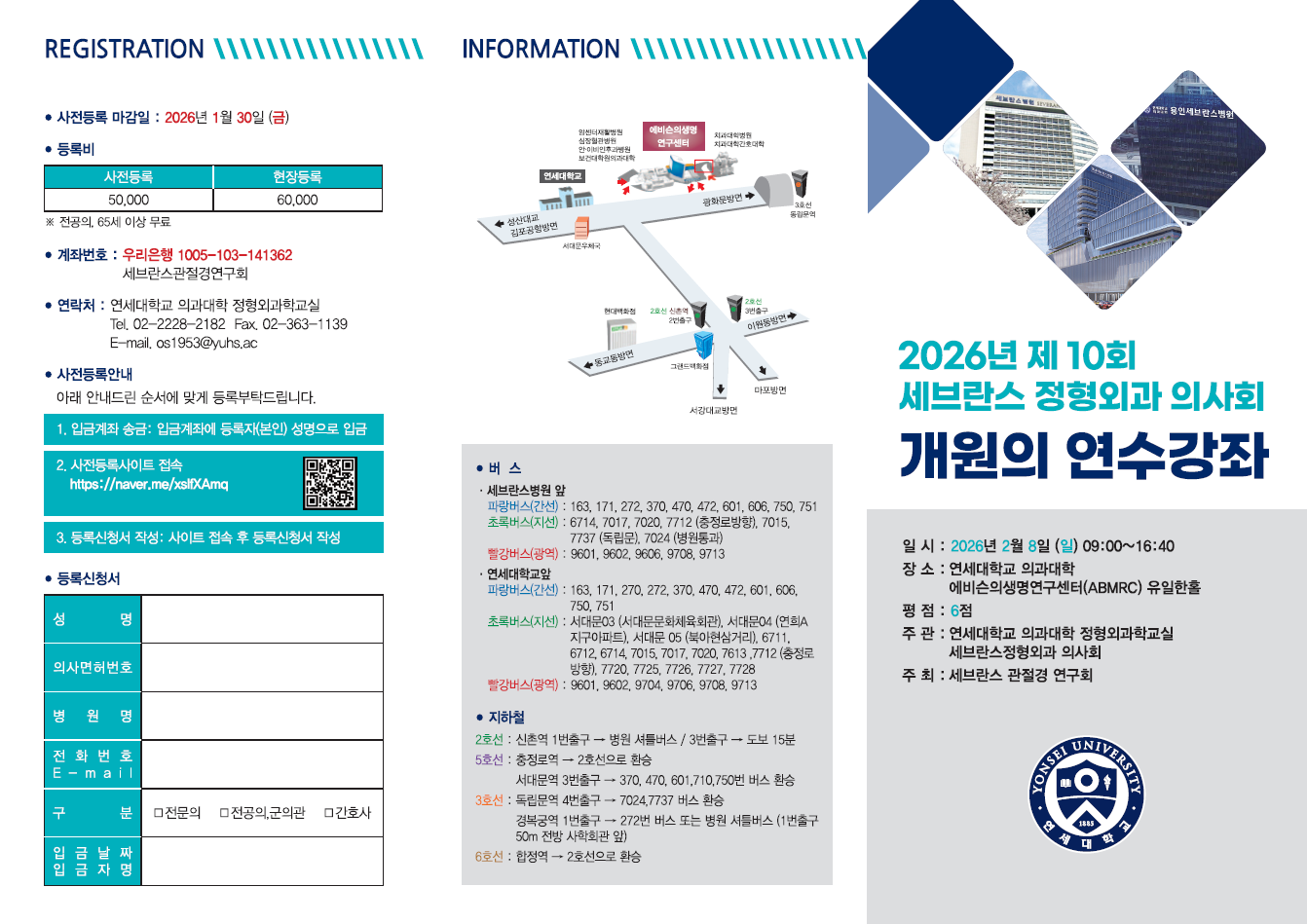 ▷ 사전등록방법 (링크): 제 10회 세브란스 정형외과 개원의 연수강좌 사전등록