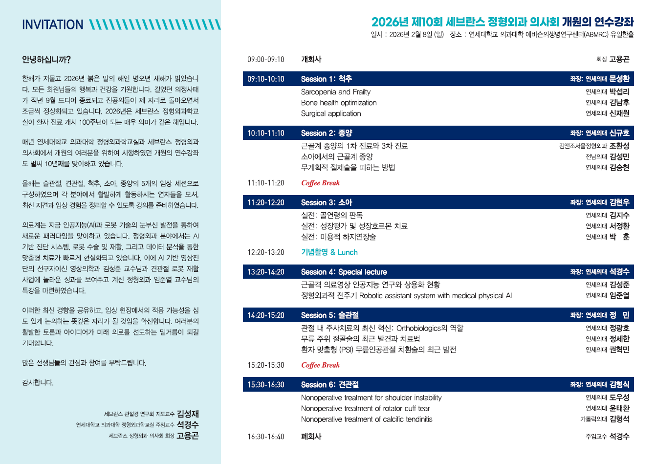 2026년 제 10회 세브란스 정형외과 개원의 연수강좌